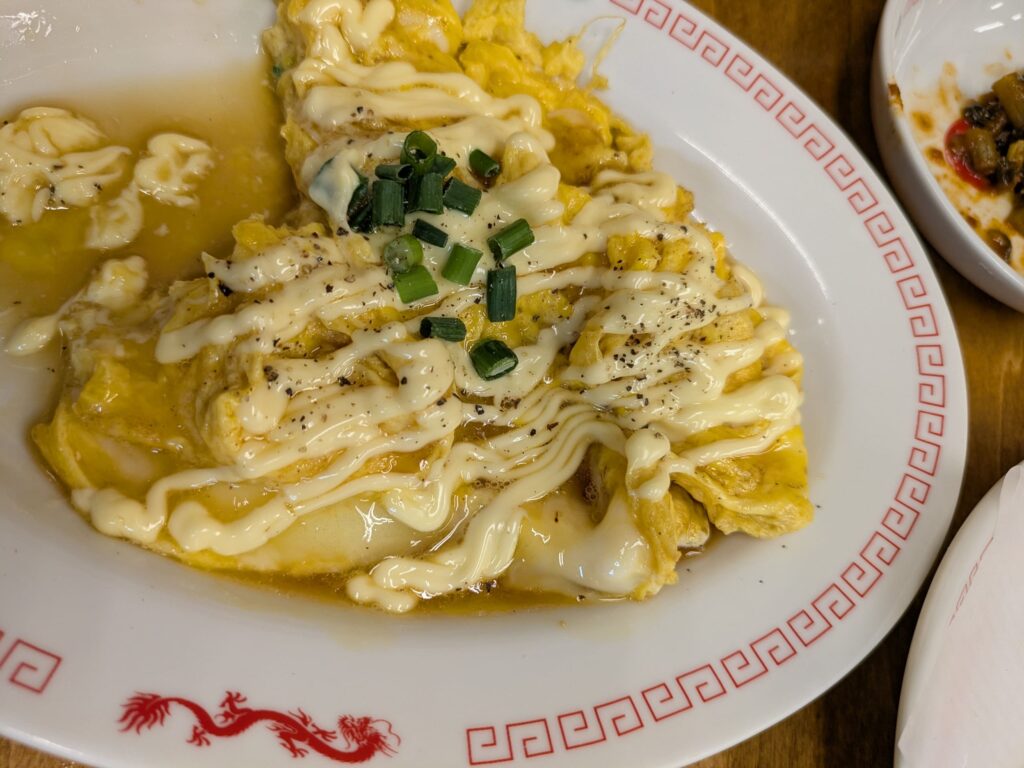 これが名前忘れたけど、マヨとソース系で味付けされた卵焼きでした。これもうまい。