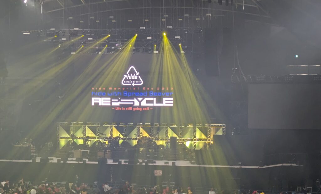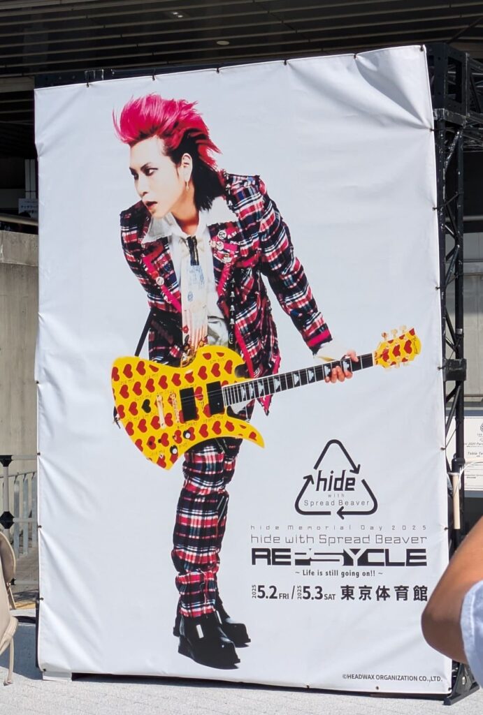 更新がだいぶ日にちが経ってしまった〜!これも結構前だけど。。5月3日hideのライブに行ってきました〜。一昨年も豊洲PITも満席だったけど、今回はhideが60歳ということで東京体育館!かなり大きい場所で大盛り上がり。良き。まずは入り口付近。みんなが写真撮っていたところに行くと、大きくhideが、、!すでに感動笑。