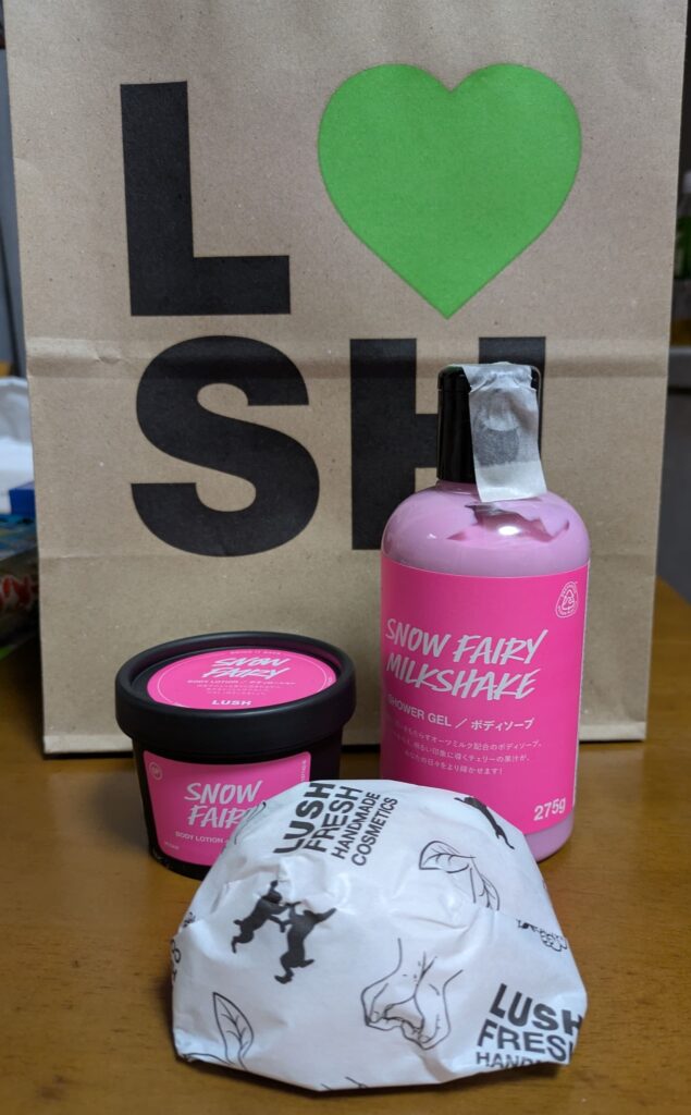 毎年秋時期になるとLUSHから出るスノーフェアリー。もう10年以上前からある??この匂いが好きでよく買っていたのですが、ここ数年買ってなかった為か急なスノーフェアリー欲が出てきて笑、先週買いに行ってきた!