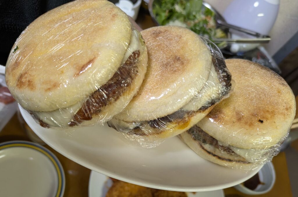 後は、手作りハンバーグ、チーズとピクルスを挟んでいただきました。個人的にはやっぱりピクルスはあったほうがメリハリがついて好きだなって思いました。